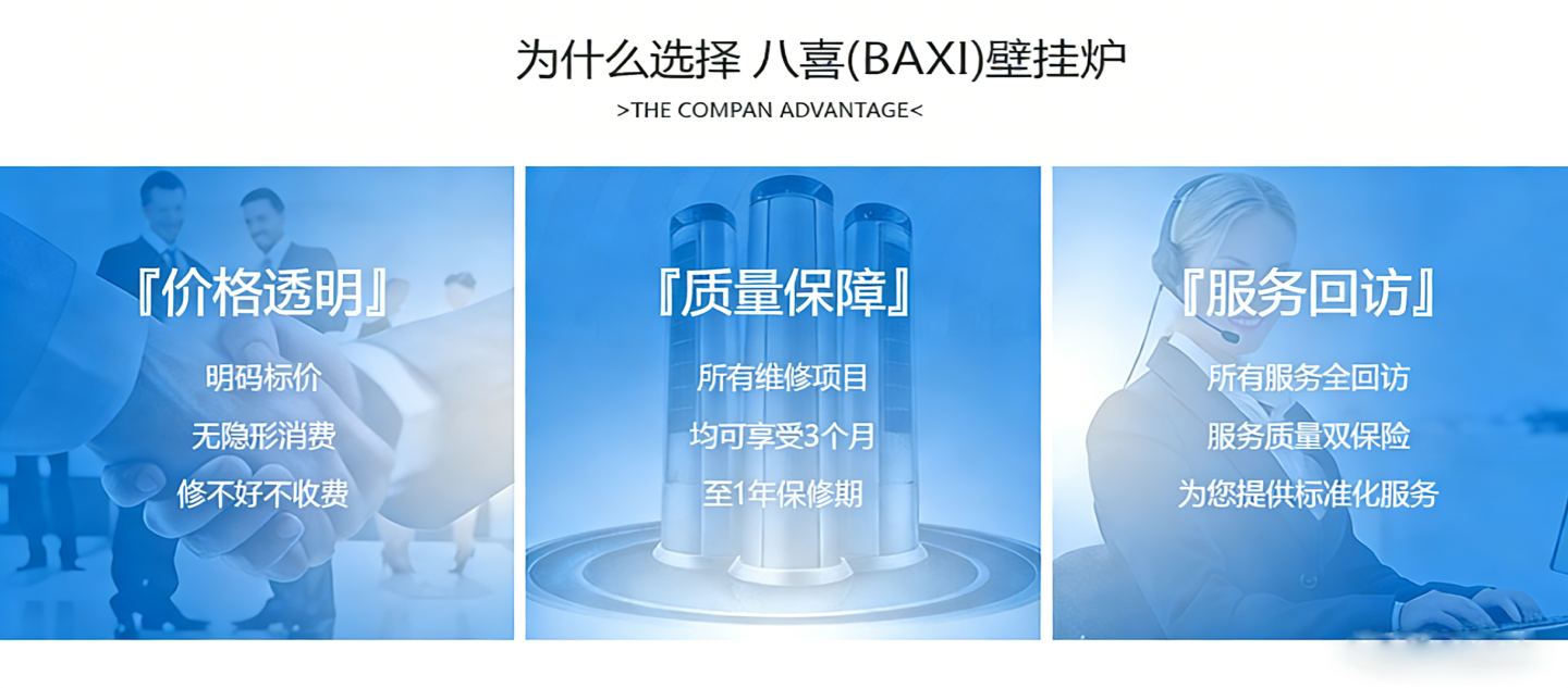 八喜壁挂炉(BAXI)售后服务中心成立于2008年,经历了十余年的努力与发展,已具有一定的规模和实力。现已拥有一支精湛的壁挂炉维修服务团队,以卓越的服务品质、专业安全的技术服务实力为广大八喜壁挂炉用户提供24小时更高更优质的售后服务。本中心为各公司单位以及家庭提供专业的八喜壁挂炉维修、保养、清洗、安装服务。服务项目:八喜壁挂炉维修、八喜壁挂炉保养维护;八喜壁挂炉清洗;八喜壁挂炉安装;八喜壁挂炉故障检修;八喜壁挂炉配件更换;八喜壁挂炉不点火维修;八喜壁挂炉漏水维修;八喜壁挂炉压力不足维修;八喜壁挂炉温度异常维修;所有服务质保一年;提供24小时上门服务。